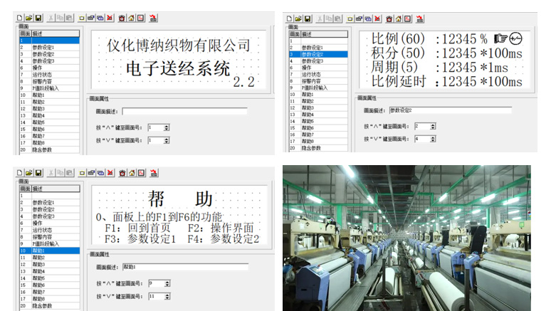 系統(tǒng)通過采樣織機經(jīng)軸位置的變化率,實時調(diào)節(jié)送經(jīng)電機的轉(zhuǎn)速,通過PID運算,實現(xiàn)送經(jīng)張力的恒定控制,并且具備觸摸屏存儲配方功能,張力自學習功能,能夠在不同產(chǎn)品、不同工藝下的、不同開機速度下都能穩(wěn)定住送經(jīng)張力,無開車痕跡。